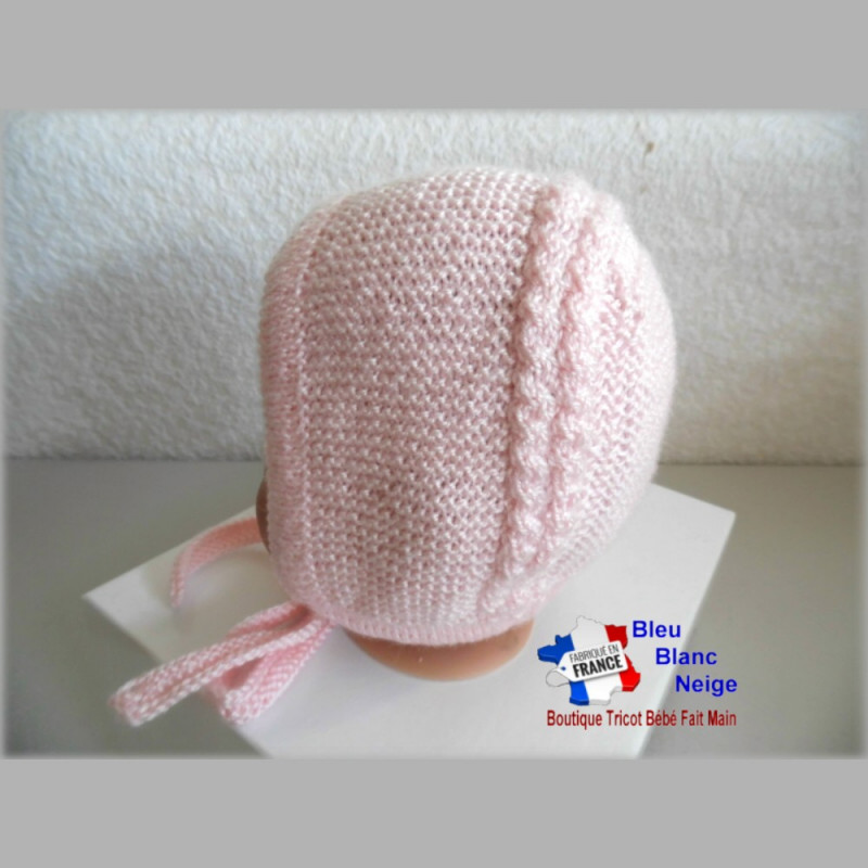 Béguin et Chaussons tricotés main layette tricot bébé et en différents coloris Blanc ou Rose - 32,95 € en tailles naissance et 1 mois (possible en 3 et 6 mois) - à retrouver sur mes différentes boutiques - tapez Bleu Blanc Neige dans la barre de google - en laine spéciale bébé très douce.