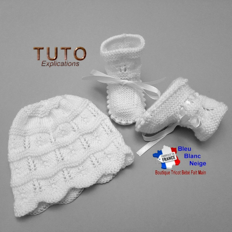 Patron à tricoter de cet ensemble pour bébé fille ou garçon, très joli gilet Irlandais, avec son bonnet et ses chaussons, tricotés main. Explications de ce modèle layette que vous pourrez recevoir en PDF par email en vous rendant sur ma boutique bleublancneige - tapez bleublancneige dans la barre de recherche - Explications détaillées avec beaucoup d'illustrations photos pour une meilleure compréhension de la fiche tricot - Tutoriel tricot bébé, modèle layette bébé de mes propres créations, tricotées avec des laines spéciales bébé, mais vous pouvez choisir la laine que vous souhaitez si vous respectez le numéro d'aiguille. Chaque pièce que je crée est le fruit d'un travail minutieux, où chaque détail est pensé pour offrir chaleur et confort aux nouveau-nés.